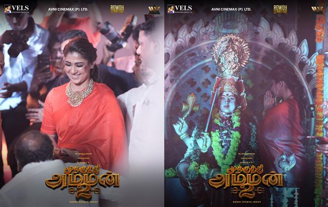 Now, Mookuthi Amman 2 has begun shooting, and images of Nayanthara from the shooting spot was shared by producers, Vels Film International. While the first film was written and co-directed by RJ Balaji, Mookuthi Amman 2 is a directorial venture of Sundar C.