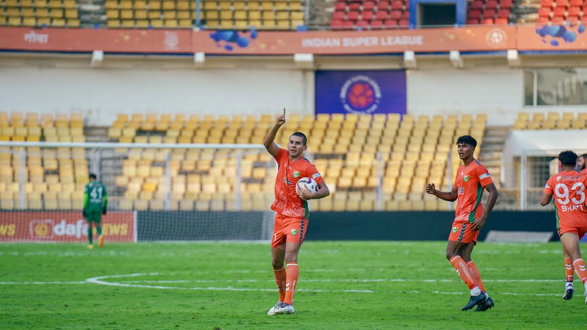 It was the team from Goa which capitalised on its first real chance in the eighth minute when Juan Mera’s cross from the left was headed down by Marcus Joseph into the back of the net.